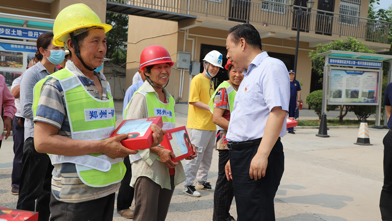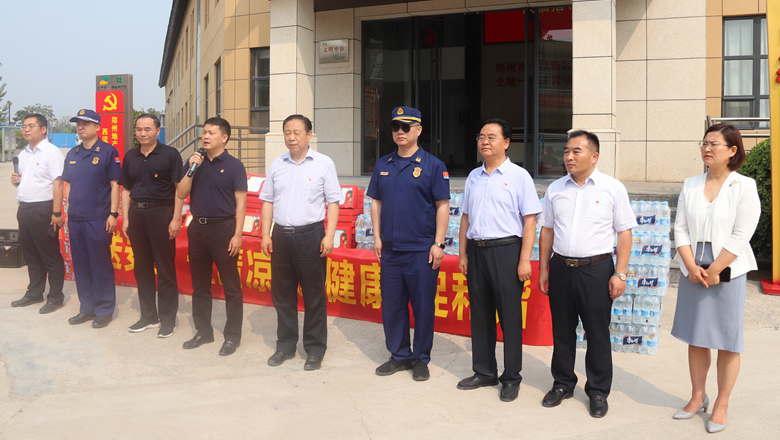 進入夏季以來,持續(xù)出現(xiàn)的高溫天氣,給奮戰(zhàn)在建設(shè)一線的施工人員帶來嚴峻考驗,廣大職工不畏酷暑,堅守崗位,辛勤付出。為做好廣大職工的防暑降溫工作,切實保護職工身體健康,6月11日,鄭州市總工會、鄭州市消防救援支隊到鄭州地產(chǎn)集團西流湖公司中原新區(qū)土地一級開發(fā)項目指揮部開展主題為“送清涼、送安全、送健康、促和諧”的夏季送清涼活動。鄭州市一級巡視員、市總工會黨組書記、主席趙新中,市消防救援支隊副支隊長、滅火救援指揮部部長李隆,市總工會副主席宋少丹,鄭州地產(chǎn)集團有限公司監(jiān)事會主席、工會主席李靜波及西流湖公司黨支部書記、董事長、總經(jīng)理吉獻亮等領(lǐng)導(dǎo)出席活動?;顒佑晌髁骱靖笨偨?jīng)理昌磊主持。
