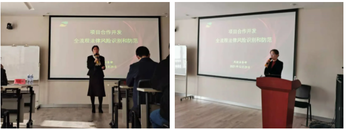 培訓(xùn)由集團風(fēng)控法務(wù)部部長邵淑毅主講,培訓(xùn)課題為《項目合作開發(fā)全流程法律風(fēng)險識別和防范》。邵部長結(jié)合豐富的房地產(chǎn)項目合作開發(fā)投資及法務(wù)管理風(fēng)控經(jīng)驗,聚焦標(biāo)的項目、目標(biāo)公司、交易過程三個維度,詳細講解了標(biāo)的項目權(quán)屬爭議、開發(fā)可行性、目標(biāo)公司股權(quán)瑕疵、治理結(jié)構(gòu)、項目鎖定、資金安全等共計24項重大風(fēng)險。從全流程風(fēng)險防范的角度,提出四個方面的應(yīng)對措施:充分全面的盡職調(diào)查、合理的交易方案、嚴(yán)謹(jǐn)規(guī)范的合同文本、有效的履約管理。最后,邵部長提出集團法務(wù)及投資人員在工作中應(yīng)務(wù)必盡心盡責(zé)、建立全流程把控理念,在項目風(fēng)險防控中創(chuàng)造價值。