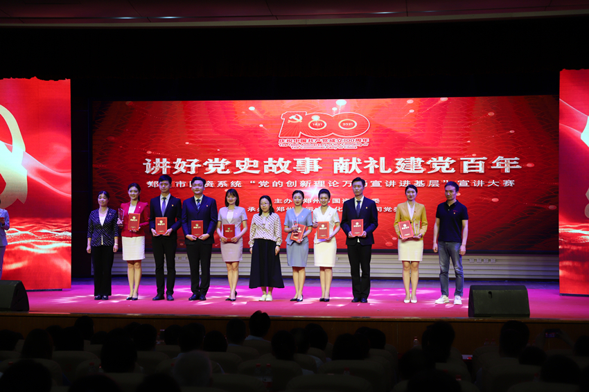 為慶祝中國共產(chǎn)黨成立100周年, 扎實(shí)開展黨史學(xué)習(xí)教育,5月26日上午,鄭州市國資系統(tǒng)“講好黨史故事·獻(xiàn)禮建黨百年”——“黨的創(chuàng)新理論萬場宣講進(jìn)基層”宣講大賽在市總工會一樓職工大禮堂圓滿落下帷幕。來自市國資系統(tǒng)14家單位選送的15個宣講節(jié)目進(jìn)入大賽決賽,鄭州地產(chǎn)集團(tuán)選送的西流湖公司黨支部宣講節(jié)目《百年交響》榮獲三等獎。