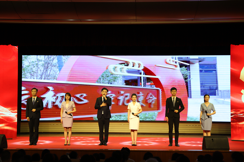 決賽中,來自鄭州地產(chǎn)集團(tuán)西流湖公司的曹珂、魯照宇、白承灝和來自鄭州地產(chǎn)集團(tuán)鄭地發(fā)展公司的張雅欣、單凌云、康宇皓用生動的語言、昂揚(yáng)的風(fēng)貌,講述了中國共產(chǎn)黨建黨百年來帶領(lǐng)人民求解放、謀復(fù)興的輝煌歷程,講述了鄭地人為城市發(fā)展繪就宏偉藍(lán)圖、奏鳴城市交響的生動實(shí)踐,講述了共產(chǎn)黨員主動擔(dān)當(dāng)、奮發(fā)有為,為黨旗增光添彩的初心使命,用“百年交響”唱出獻(xiàn)給黨的深情贊歌,不僅展示出新時代國資國企黨員干部愛黨愛國的情懷和昂揚(yáng)向上的精神面貌,更為觀眾帶來了一場精彩的視聽盛宴。