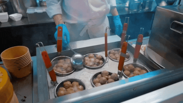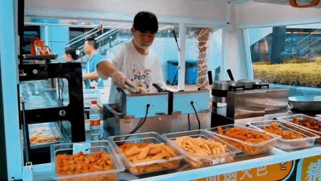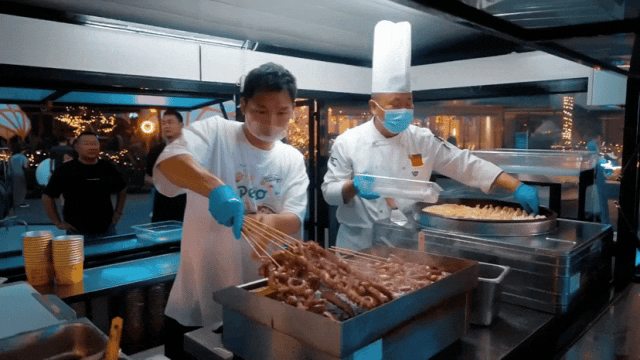 在夜市兩旁,章魚(yú)燒、特色酥肉、撈汁小海鮮、小龍蝦……十余家風(fēng)味小吃店一字排開(kāi),琳瑯滿目,吸引了不少消費(fèi)者駐足品嘗。