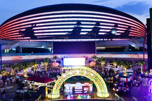 熠熠星光耀向夜空,呼應(yīng)著霓虹閃爍的奧體中心,飄散的煙火氣和美食的香氣充斥著整個(gè)下沉空間,舞臺(tái)音樂(lè)節(jié)奏歡快、火爆酷炫,在霓虹交錯(cuò)的空間里,一天的時(shí)間仿佛被夜市拉長(zhǎng),這是年輕人帶給這座城市的無(wú)限活力。