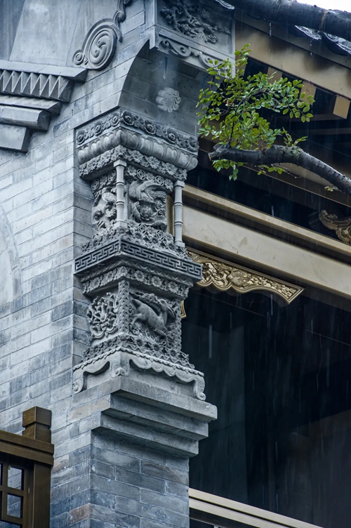 12號(hào)樓主題為獅子,主題來(lái)源于三門峽靈寶函谷關(guān),象征“事事如意”的獅子在柱子、平板枋、額枋、卡子花、假梁頭等構(gòu)件均有出現(xiàn)。