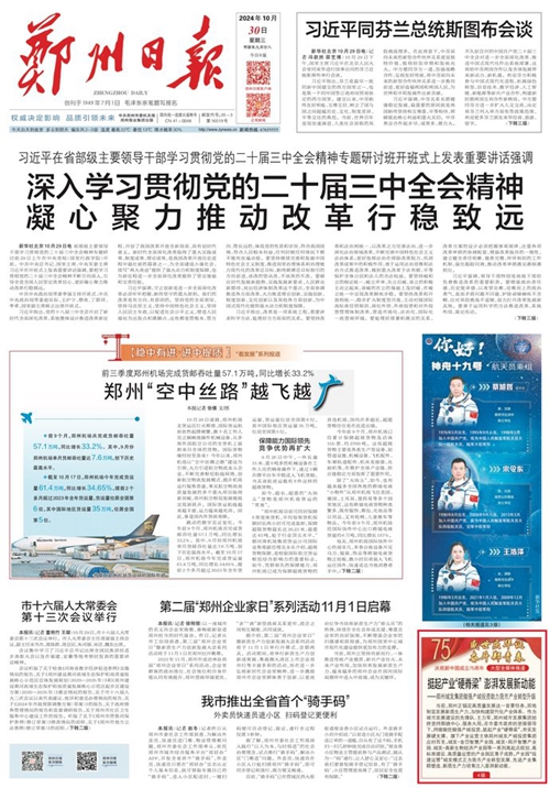 黨的二十屆三中全會提出,高質(zhì)量發(fā)展是全面建設(shè)社會主義現(xiàn)代化國家的首要任務(wù)。當(dāng)前,鄭州正錨定高質(zhì)量發(fā)展這一首要任務(wù),因地制宜發(fā)展新質(zhì)生產(chǎn)力,加快構(gòu)建現(xiàn)代化產(chǎn)業(yè)體系。