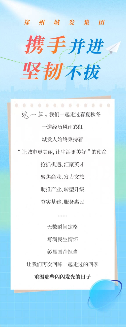 每一個足跡,都凝結著每一個城發(fā)人奮力拼搏的汗水;每一步跨越,都源于城發(fā)人團結協(xié)作的“逐夢力量”;每一次蝶變,都堅定著城發(fā)人向新而行的必勝信心。