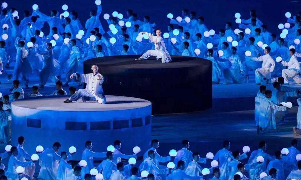 5塊總面積,超過(guò)3000平米的輕型透明網(wǎng)幕,130余臺(tái)高清投影機(jī)覆蓋上萬(wàn)平米場(chǎng)地,通過(guò)威亞的技術(shù)手段和地面投影相呼應(yīng)。地面、空中、立面多維度的表演空間,將各種特色民族元素呈現(xiàn)出來(lái),呈現(xiàn)了各族人民的幸福生活,書寫出一張張民族文化名片。當(dāng)現(xiàn)場(chǎng)各族人民跳起歡快的舞蹈,當(dāng)各民族美麗的服飾在現(xiàn)場(chǎng)轉(zhuǎn)出最絢麗的弧度,展現(xiàn)出各民族團(tuán)結(jié)奮進(jìn)、朝氣蓬勃的精神風(fēng)貌。作為河南特色的少林和太極兩個(gè)重要元素也在本次開幕式精彩亮相,由塔溝武校數(shù)千名演員演繹。隨著音樂(lè)節(jié)奏的轉(zhuǎn)換,他們變幻各種造型,動(dòng)靜結(jié)合、氣勢(shì)恢宏,讓觀眾更加了解精彩河南。
