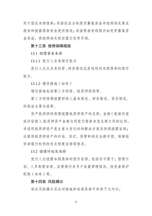 (二)發(fā)行人應(yīng)按照監(jiān)管部門和交易場所的規(guī)定,在存續(xù)期內(nèi)定期披露財(cái)務(wù)情況、經(jīng)營情況、募集資金使用情況、項(xiàng)目進(jìn)展情況等相關(guān)信息。如存續(xù)期內(nèi)變更募集資金用途或發(fā)生其他對(duì)債券持有人權(quán)益有重大影響的事項(xiàng),應(yīng)符合相關(guān)法律法規(guī)和政策要求,按照有關(guān)規(guī)定或約定履行程序,并及時(shí)公告。